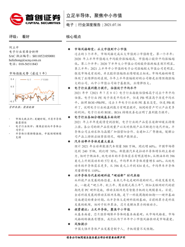 【首创证券】【20210716】20210716-首创证券-电子行业深度报告:立足半导体,聚焦中小市值-26页 行业研究
