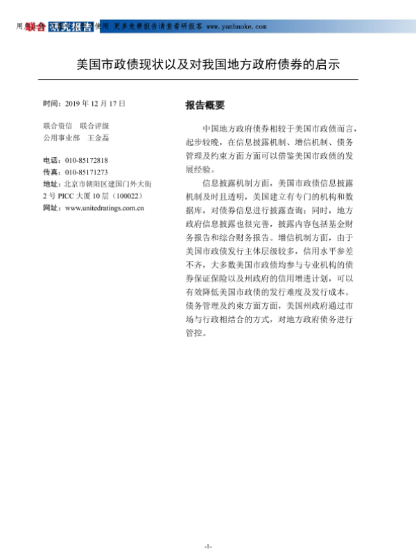 【联合资信 联合评级 公用事业部】【20191217】美国市政债现状以及对我国地方政府债券的启示-12页 行业研究
