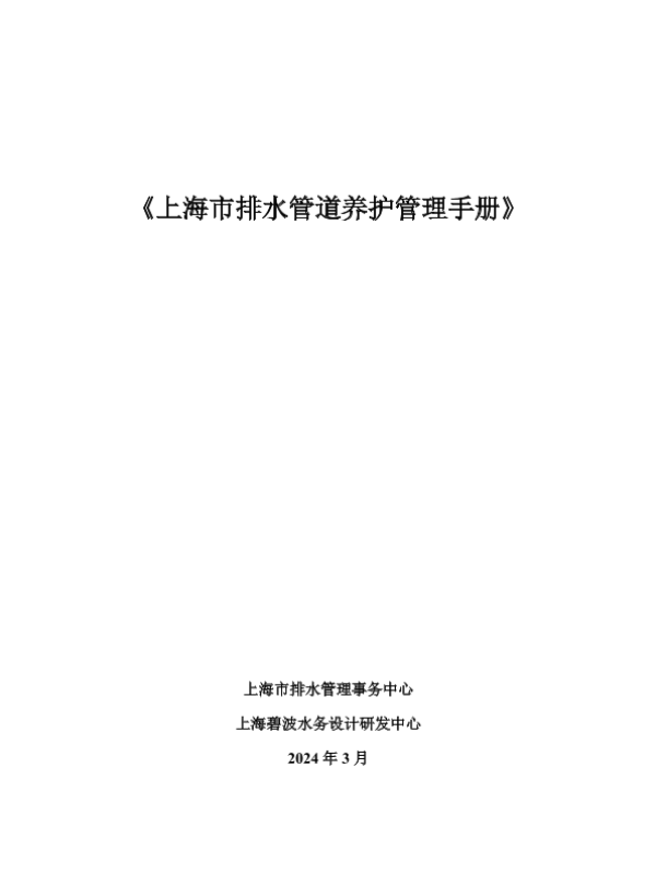 【上海市排水管理事务中心&上海碧波水务设计研发中心】【202403】上海市排水管道养护管理手册-105页 指南