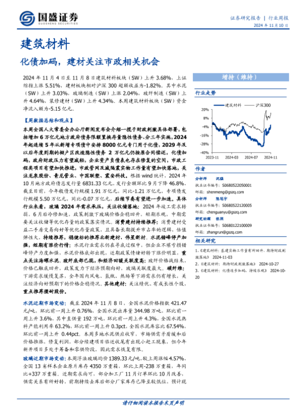 【国盛证券】【20241110】建筑材料行业周报:化债加码,建材关注市政相关机会-19页 行业研究