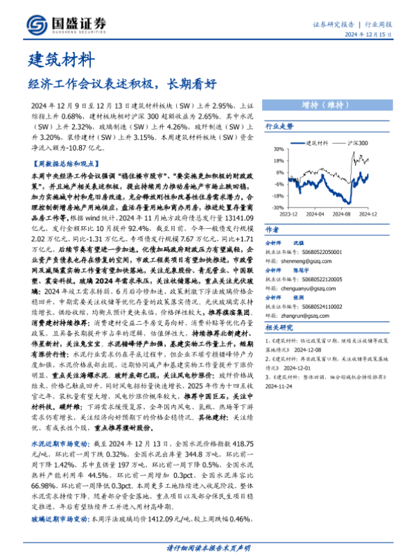 【国盛证券】【20241215】建筑材料行业周报:经济工作会议表述积极,长期看好-20页 行业研究