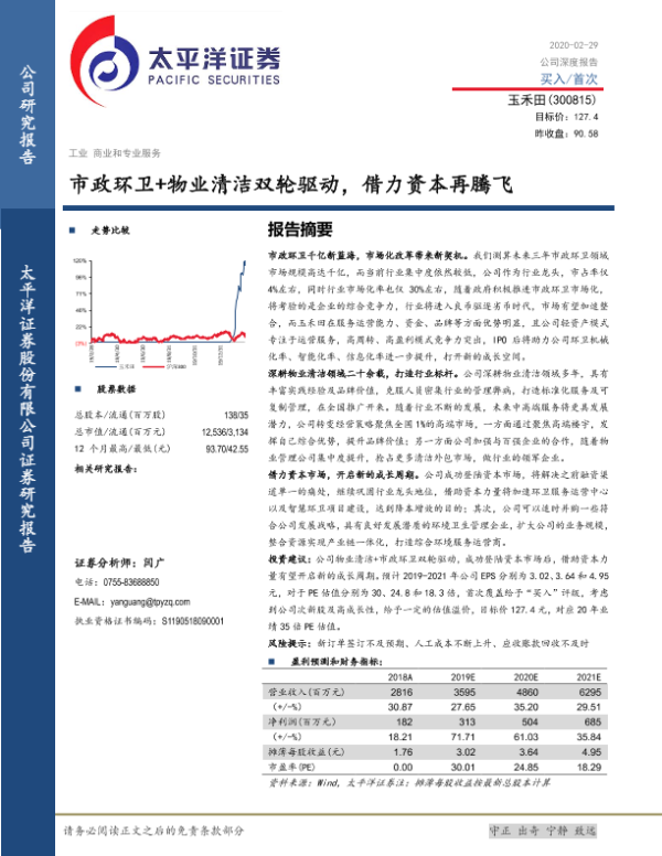 【太平洋证券】【20200229】市政环卫+物业清洁双轮驱动,借力资本再腾飞-27页 行业研究