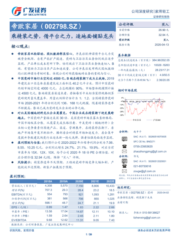 【广发证券】【20200413】20200413-广发证券-帝欧家居-002798.SZ-乘精装之势,借平台之力,造地面铺贴龙头-39页 行业研究