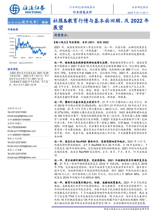 【海通证券】【20220103】旅游服务业行业信息点评:社服&教育行情与基本面回顾,及2022年展望-9页 行业研究