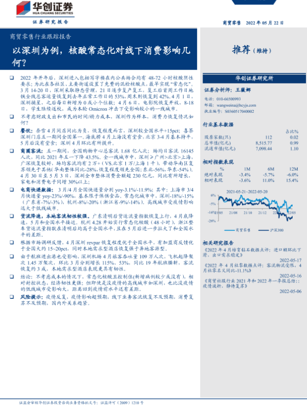 【华创证券】【20220522】商贸零售行业跟踪报告:以深圳为例,核酸常态化对线下消费影响几何-12页 行业研究