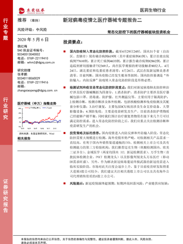 【东莞证券】【20200506】新冠病毒疫情之医疗器械专题报告二:常态化防控下的医疗器械板块投资机会-15页 行业研究