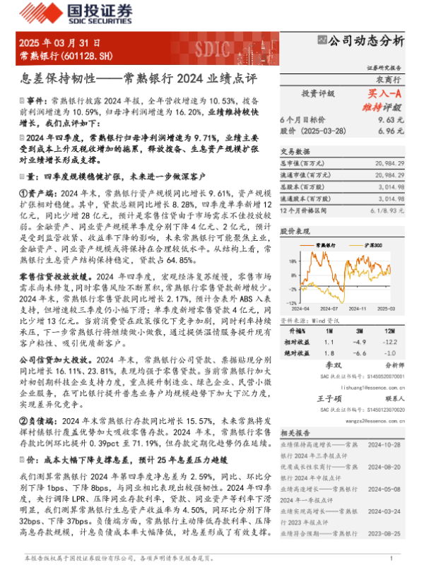 【国投证券】【20250331】常熟银行2024业绩点评:息差保持韧性-10页 证券期货研究报告