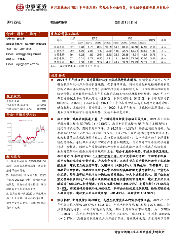 【中泰证券】【20210831】2021半年报总结:常规业务全面恢复,关注细分赛道创新投资机会-13页 行业研究