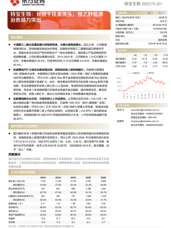 【东方证券】【20240820】特宝生物:长效干扰素龙头,慢乙肝临床治愈潜力突出-27页 行业研究