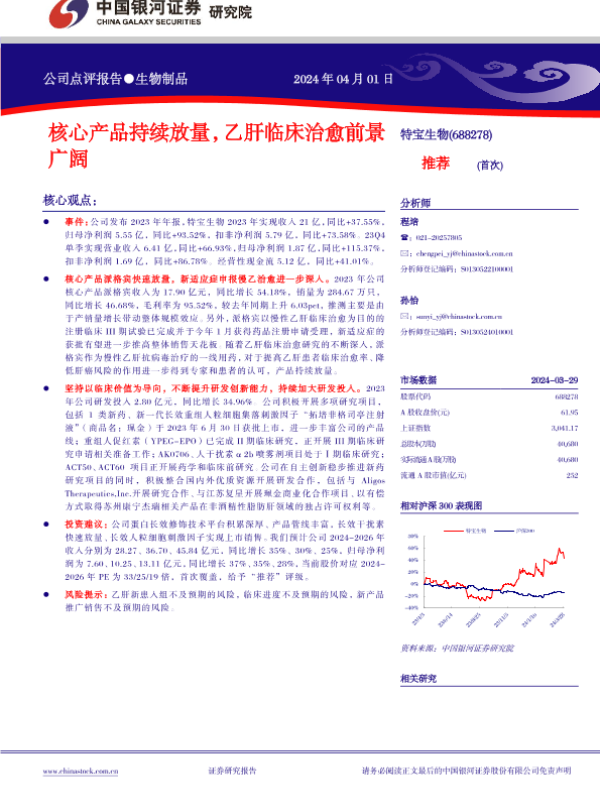 【银河证券】【20240401】特宝生物-核心产品持续放量,乙肝临床治愈前景广阔-14页 行业研究