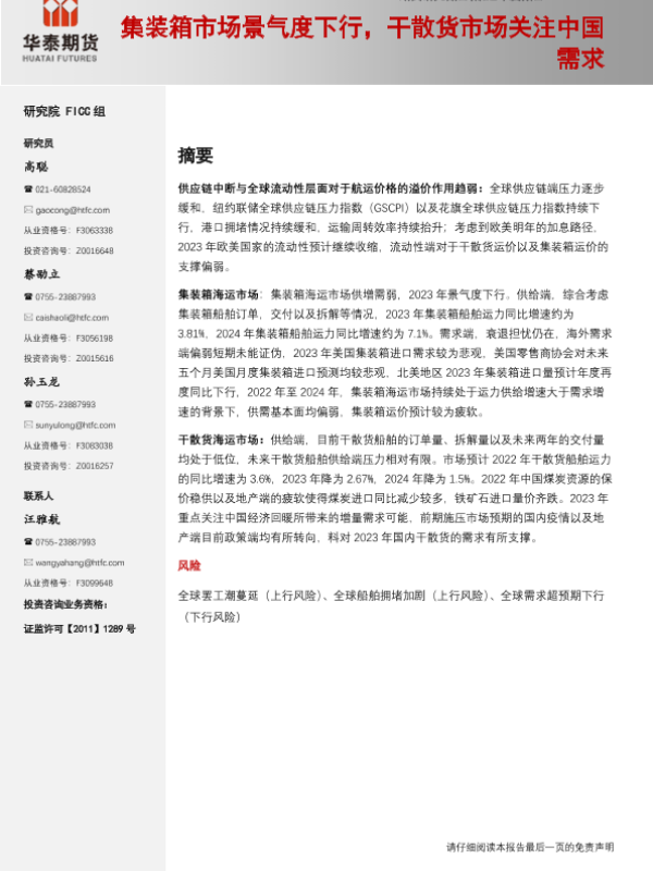 【华泰期货】【20221126】航运年度报告:集装箱市场景气度下行,干散货市场关注中国需求-34页 行业研究