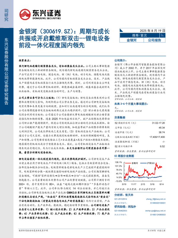 【东兴证券股份有限公司证券研究报告】【20250819】金银河-锂电设备前段一体化程度国内领先:周期与成长共振或开启戴维斯双击-37页 证券期货研究报告