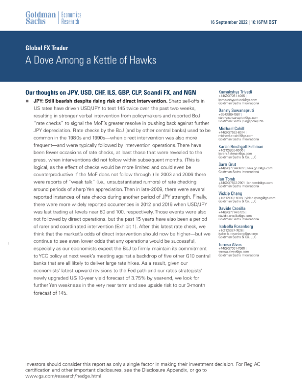 【Goldman Sachs】【20220916】Global FX Trader A Dove Among a Kettle of Hawks-26页 宏观策略