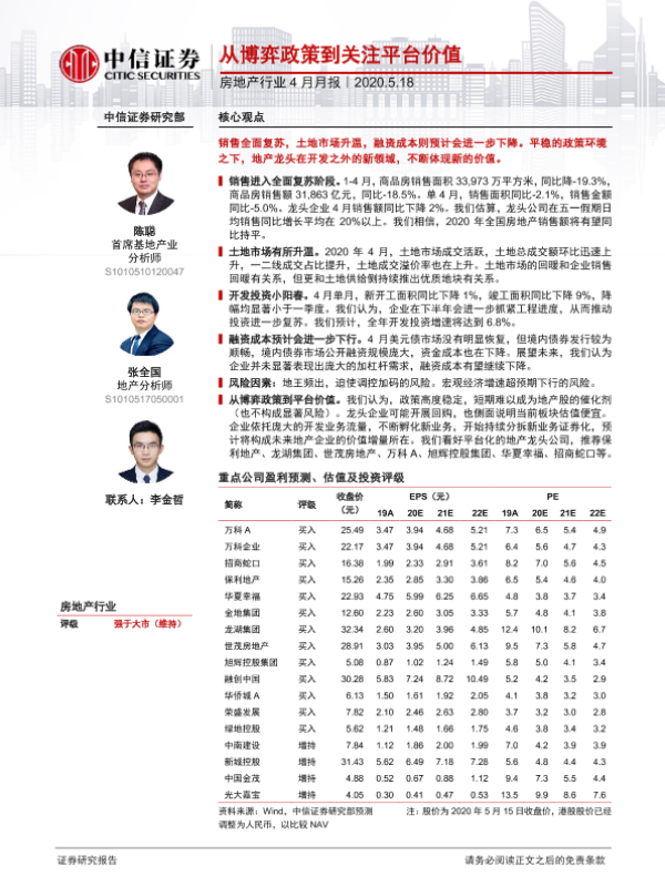 【中信证券】【20200518】从博弈政策到关注平台价值-14页 行业研究