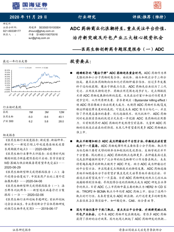 【国海证券】【20201129】ADC药物商业化浪潮将至,重点关注平台价值、治疗新突破及外包产业三大核心投资机会-36页 行业研究