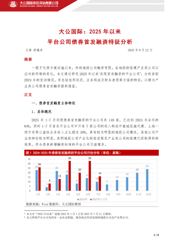 【大公国际】【20250822】2025年以来平台公司债券首发融资特征分析-9页 行业研究