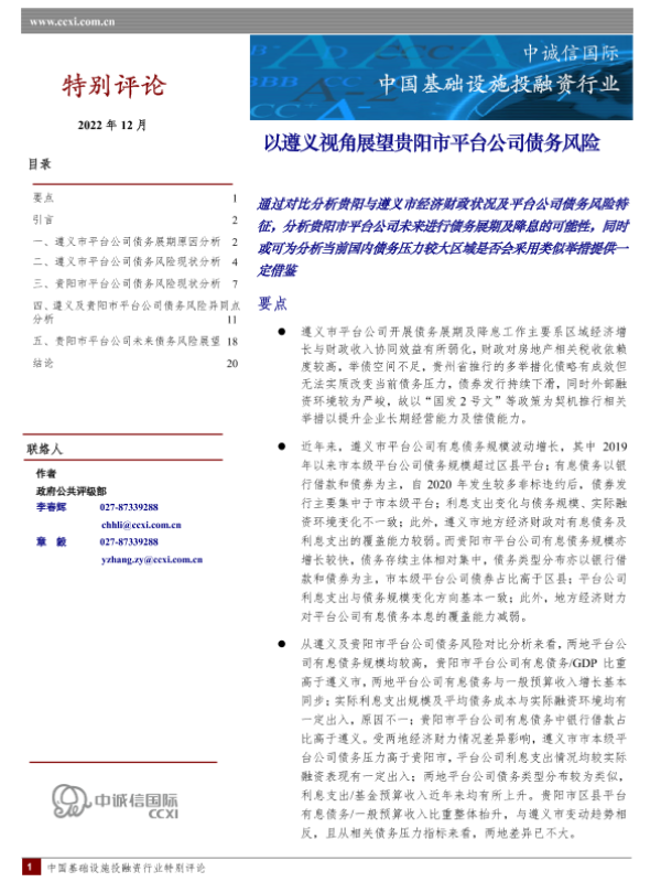 【中诚信国际】【202212】中诚信-以遵义视角展望贵阳市平台公司债务风险-21页 行业研究