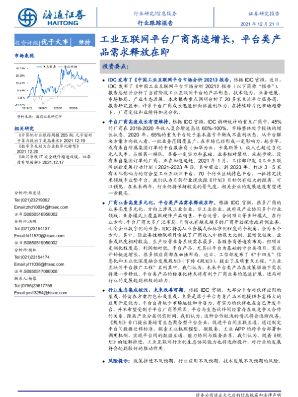 【海通证券】【20211221】信息服务行业跟踪报告:工业互联网平台厂商高速增长,平台类产品需求释放在即-2页 行业研究
