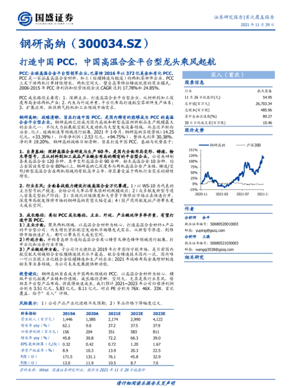 【国盛证券】【20211129】钢研高纳(300034.SZ)— 打造中国PCC,中国高温合金平台型龙头乘风起航-41页 行业研究