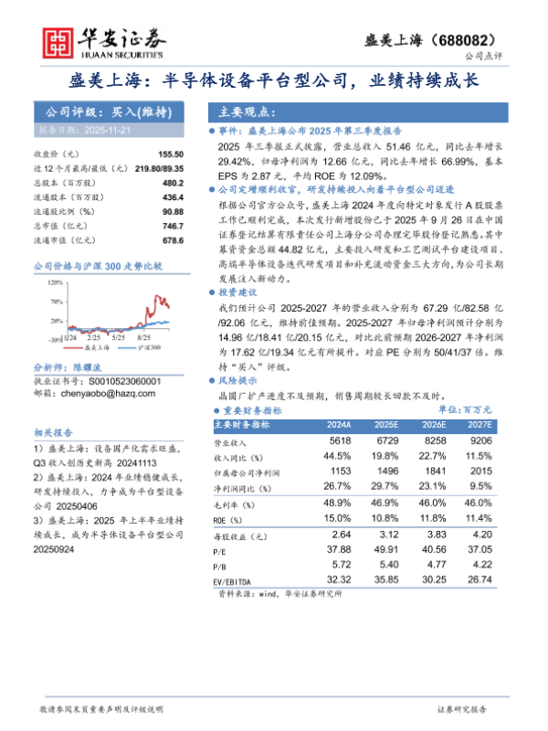 【华安证券】【202511】盛美上海:半导体设备平台型公司,业绩持续成长-3页 证券期货研究报告