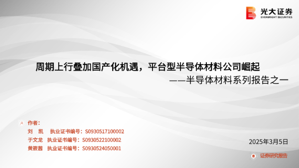 【光大证券】【20250305】周期上行叠加国产化机遇,平台型半导体材料公司崛起-51页 行业研究