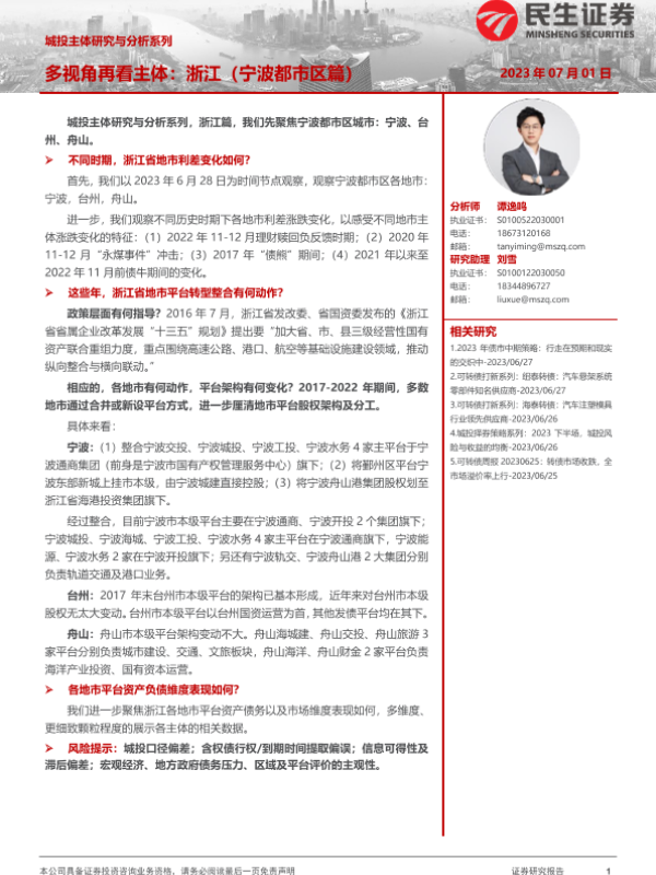 【民生证券】【20230701】城投主体研究与分析系列:多视角再看主体,浙江(宁波都市区篇)-33页 行业研究