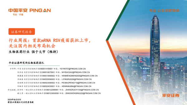 【平安证券】【20240603】首款mRNA RSV疫苗获批上市,关注国内相关布局机会-15页 行业研究