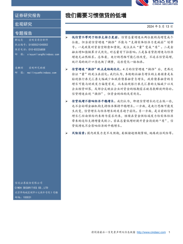 【信达证券】【20240513】我们需要习惯信贷的低增-10页 行业研究