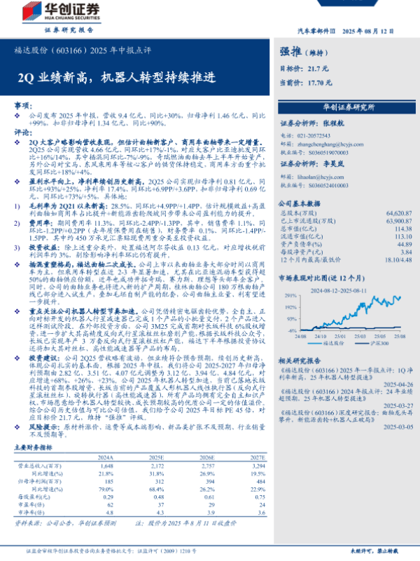 【华创证券】【20250812】2025年中报点评:2Q业绩新高,机器人转型持续推进-5页 公司研究