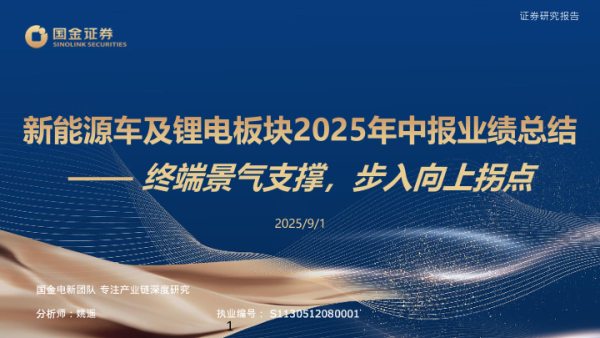 【国金证券】【20250901】新能源车及锂电板块2025年中报业绩总结——终端景气支撑,步入向上拐点-48页 证券期货研究报告