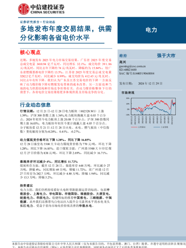 【中信建投证券】【20241229】电力行业动态:多地发布年度交易结果,供需分化影响各省电价水平-15页 行业研究