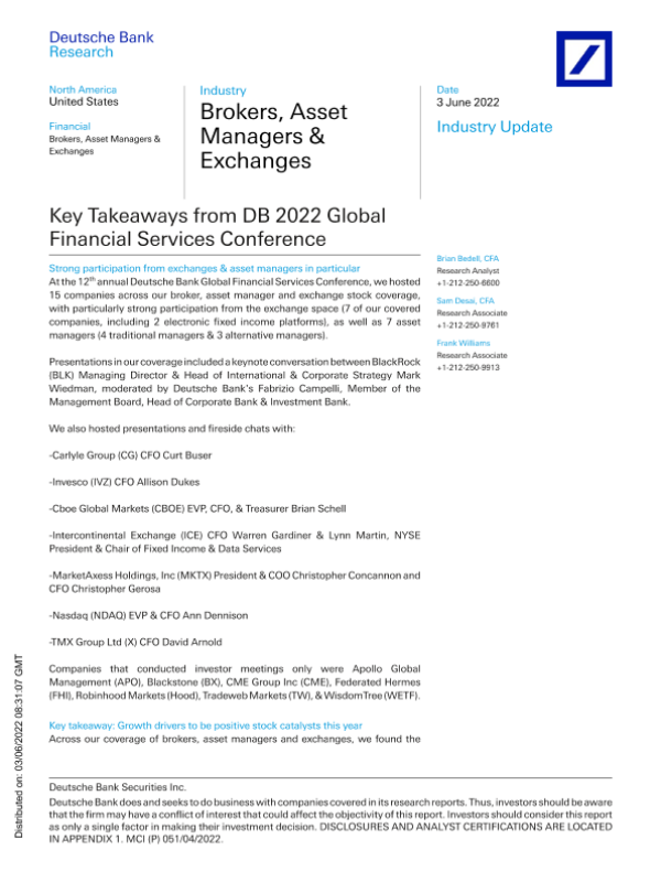 【Deutsche Bank】【20220603】德银2022全球金融服务会议要点-28页 行业研究