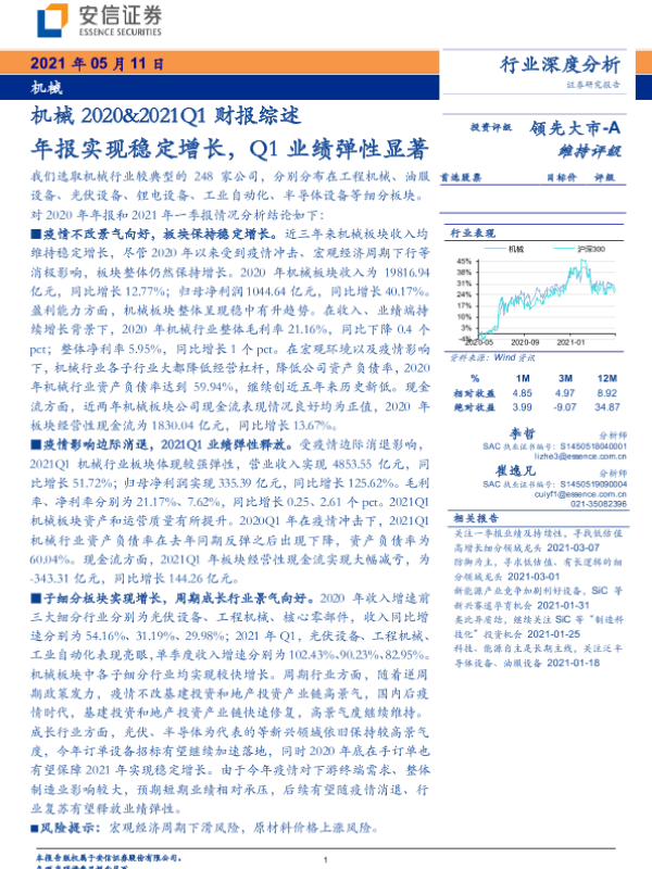 【安信证券】【20210511】机械2020&2021Q1财报综述:年报实现稳定增长,Q1业绩弹性显著-41页 财报