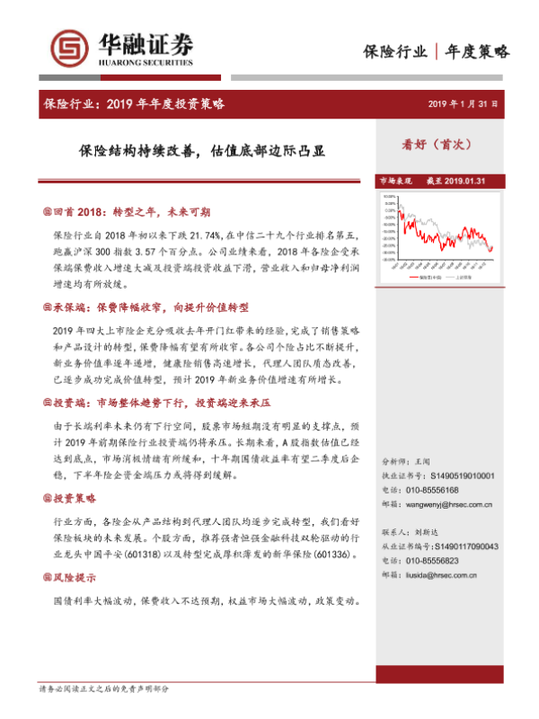 【华融证券】【20190131】保险行业:2019年年度投资策略-22页 行业研究