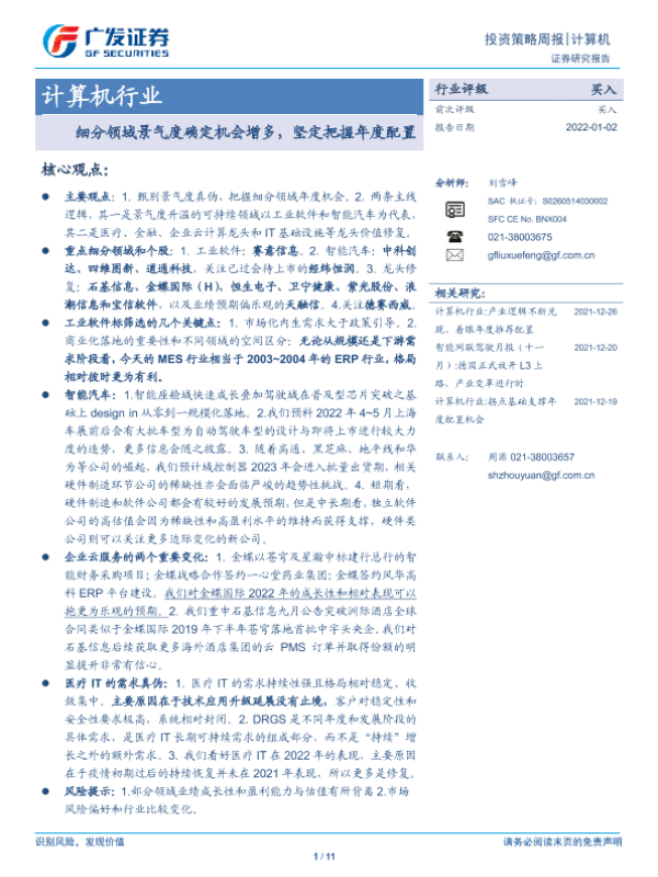【广发证券】【20220102】20220102-广发证券-计算机行业投资策略周报:细分领域景气度确定机会增多,坚定把握年度配置-11页 行业研究