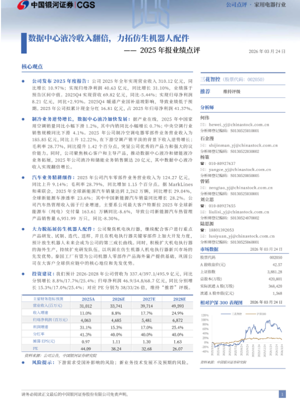【银河证券】【202603】数据中心液冷收入翻倍,力拓仿生机器人配件——2025年报业绩点评-12页 证券期货研究报告