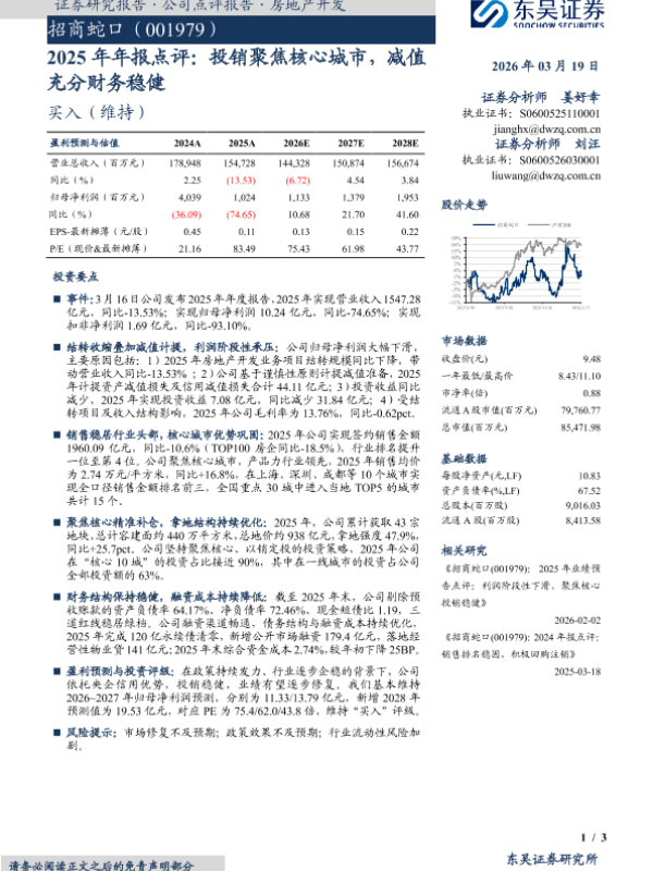 【太平洋证券】【2025】招商蛇口2025年报点评:拿地聚焦核心,行业排名提升-5页 证券期货研究报告