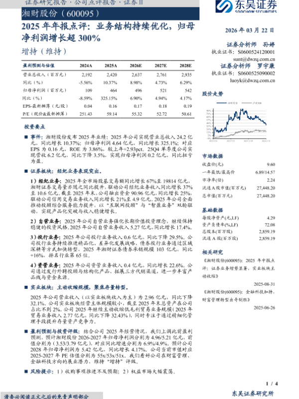 【东吴证券】【202603】2025年年报点评:业务结构持续优化,归母净利润增长超300%-4页 证券期货研究报告