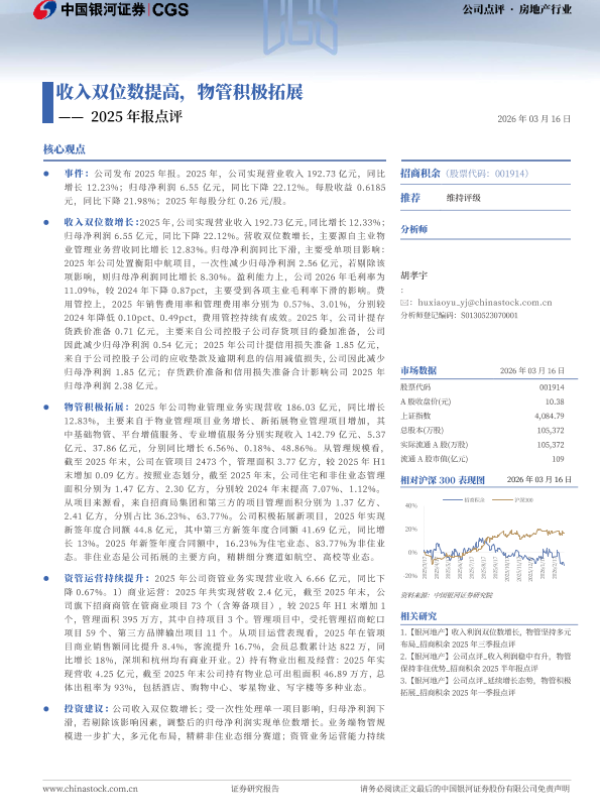 【银河证券】【202603】招商积余-001914.SZ-2025年报点评_收入双位数提高_物管积极拓展-4页 证券期货研究报告