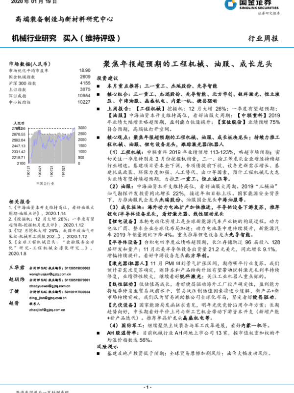 【国金证券】【20200119】机械行业研究:聚焦年报超预期的工程机械、油服、成长龙头-24页 行业研究