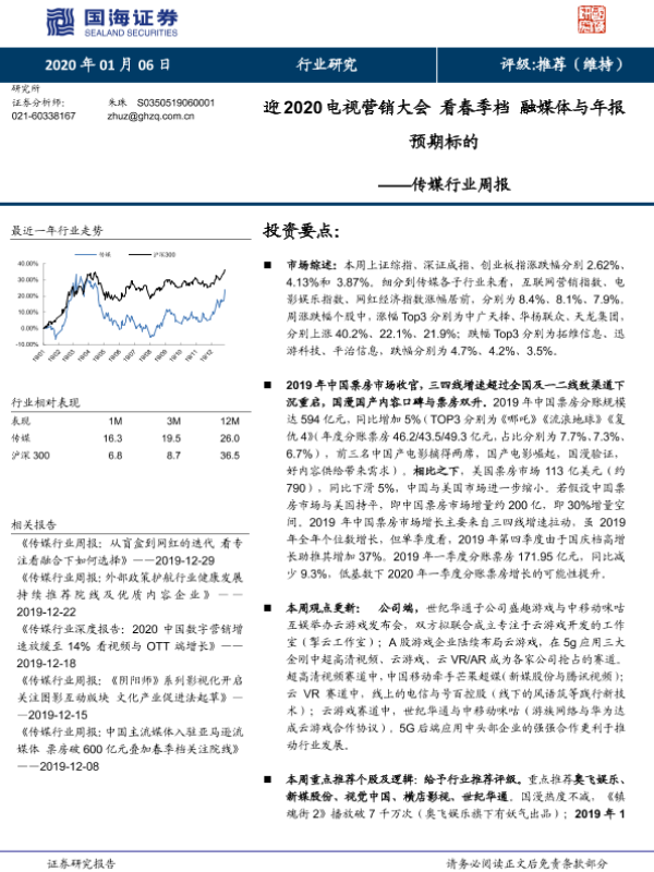 【国海证券】【20200106】迎2020电视营销大会看春季档融媒体与年报预期标的-17页 行业研究