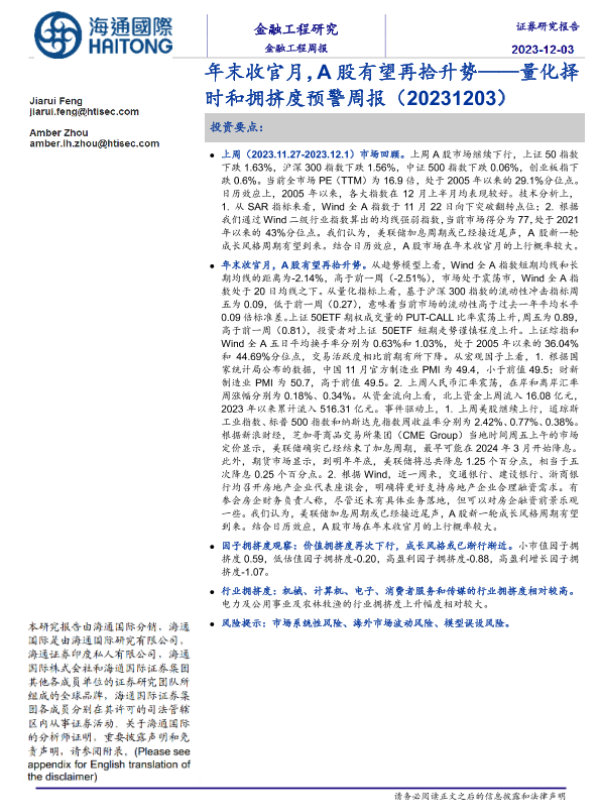 【海通国际】【20231203】量化择时和拥挤度预警周报:年末收官月,A股有望再拾升势-16页 行业研究