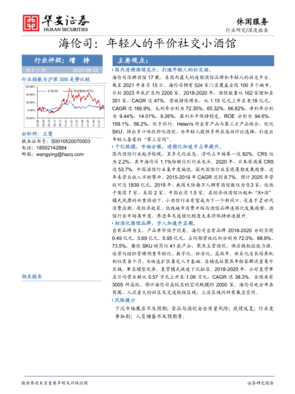 【华安证券】【20210822】休闲服务行业深度报告:海伦司,年轻人的平价社交小酒馆-33页 行业研究