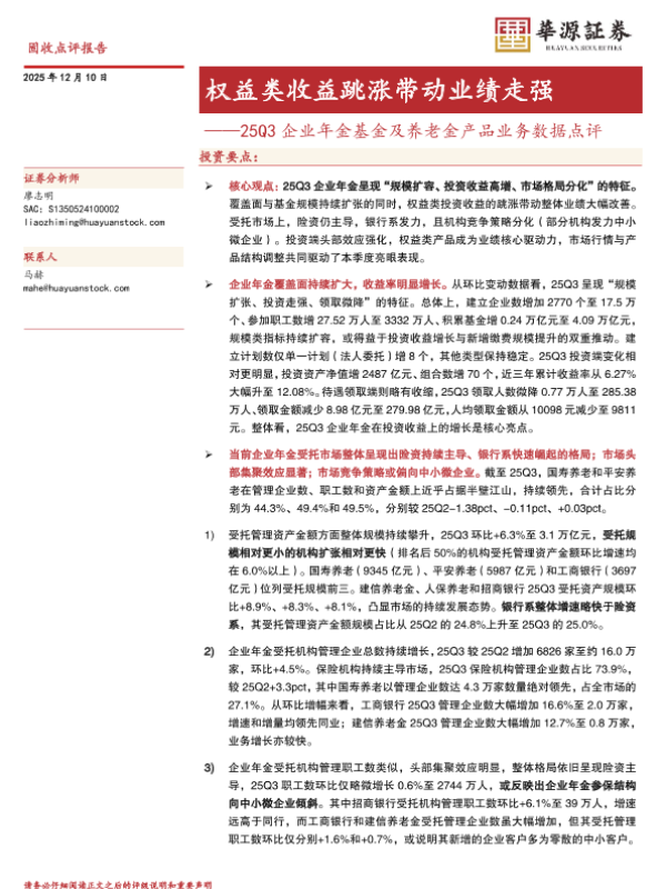 【华源证券】【202512】权益类收益跳涨带动业绩走强——25Q3企业年金基金及养老金产品业务数据点评-7页 证券期货研究报告