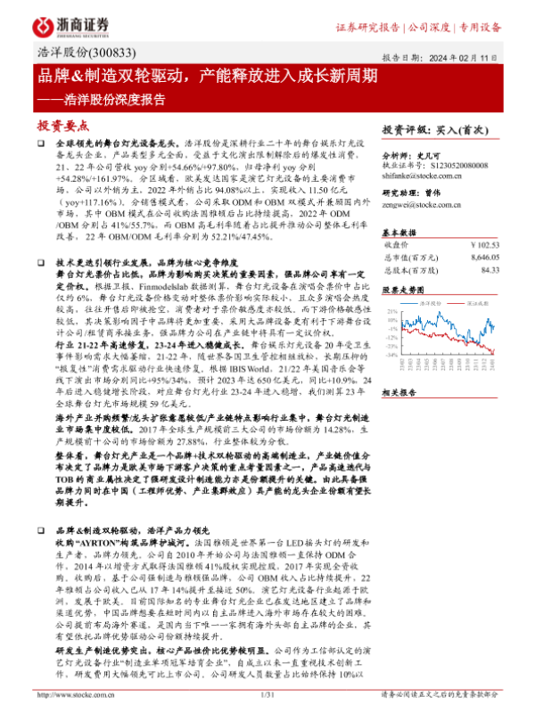 【浙商证券】【20240211】浩洋股份深度报告:品牌&制造双轮驱动,产能释放进入成长新周期-31页 行业研究