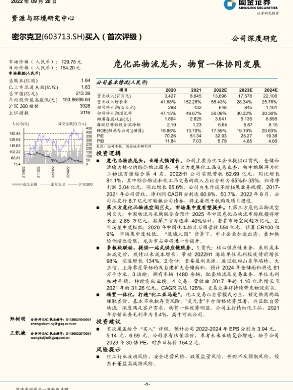 【国金证券】【20220920】密尔克卫-603713.SH-危化品物流龙头,物贸一体协同发展-31页 行业研究