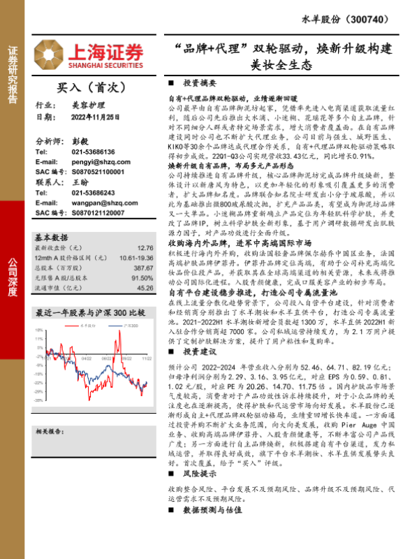 【上海证券】【20221125】“品牌+代理”双轮驱动,焕新升级构建美妆全生态-44页 行业研究
