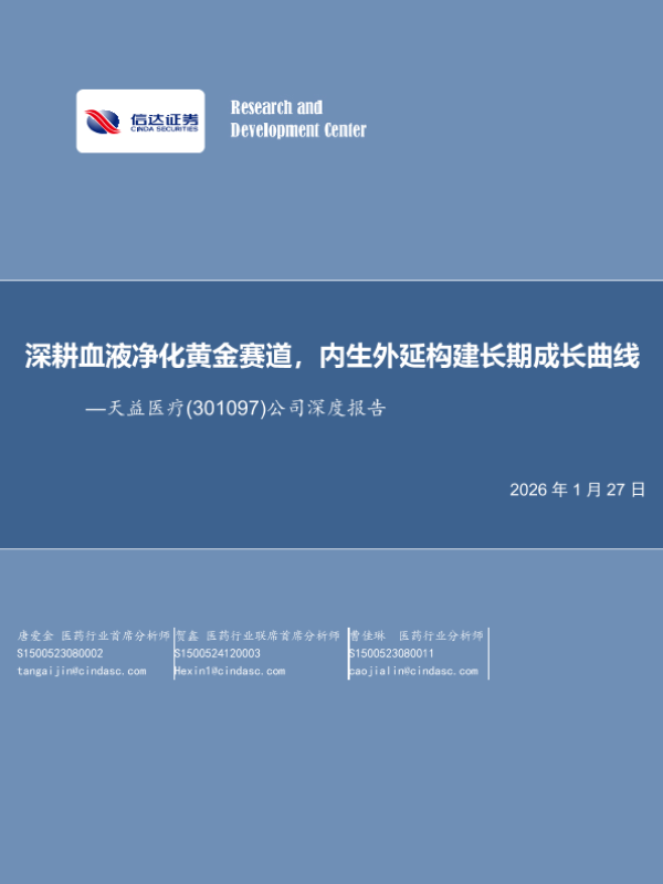 【信达证券】【202601】深耕血液净化黄金赛道,内生外延构建长期成长曲线-25页 证券期货研究报告