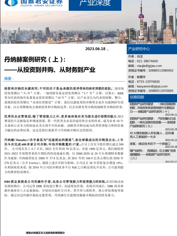 【国泰君安证券】【20230618】产业深度:丹纳赫案例研究(上),从投资到并购、从财务到产业-15页 行业研究