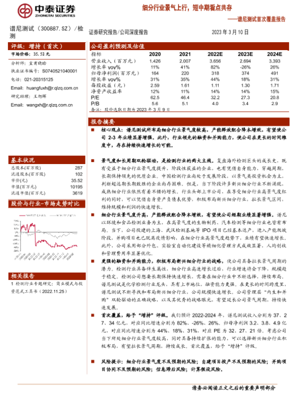 【中泰证券】【20230310】谱尼测试首次覆盖报告:细分行业景气上行,短中期看点共存-23页 行业研究